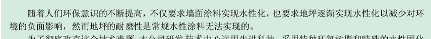 產(chǎn)品簡要介紹:環(huán)氧水性環(huán)保型地坪